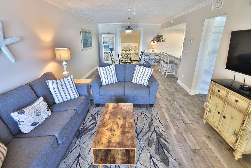 The living area is designed for relaxation and grandeur: a cozy yet expansive space where you can unwind while admiring breathtaking beach views from the balcony. Every corner of this condo is crafted to help you spread out, relax, and savor the serene coastal ambiance. Don’t just imagine it experience the beauty and sophistication that await in this unforgettable retreat.