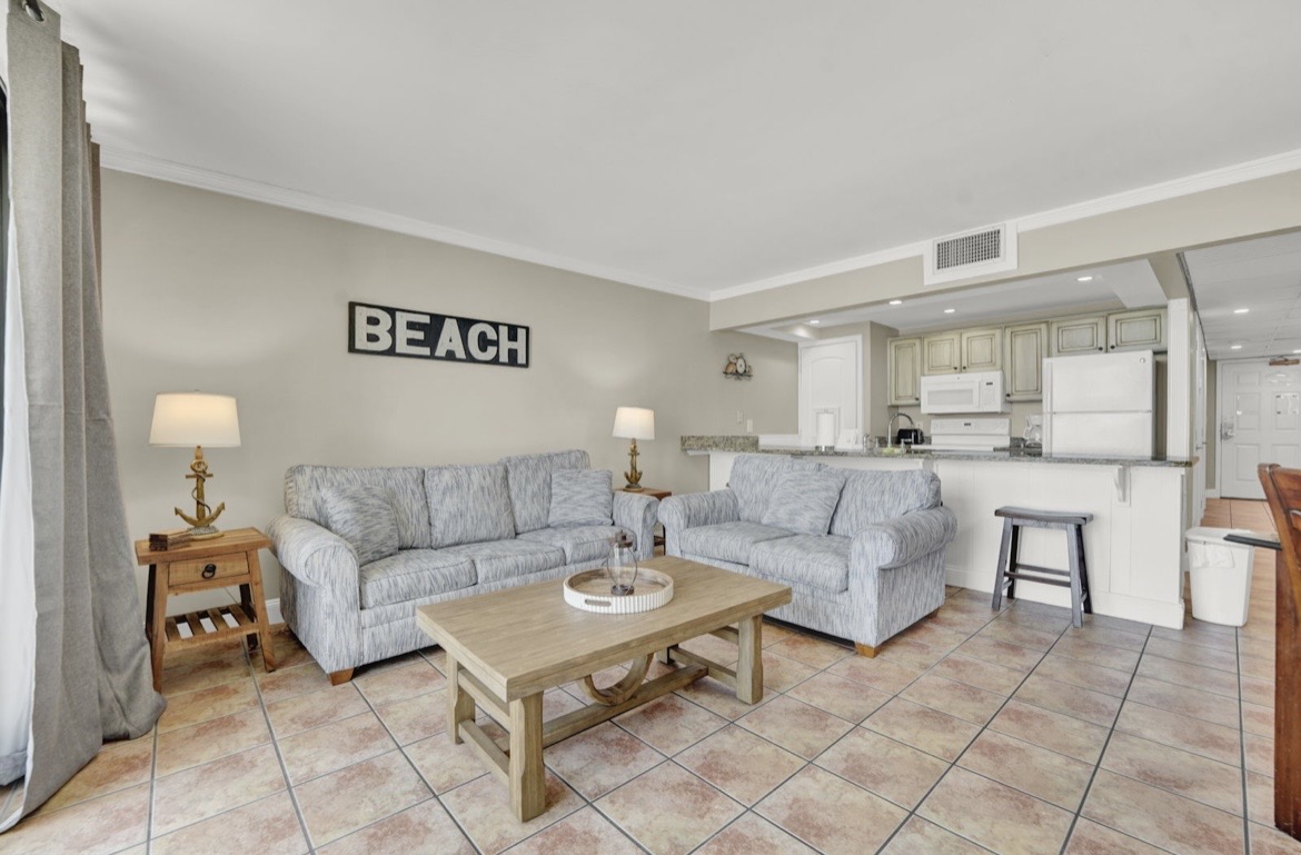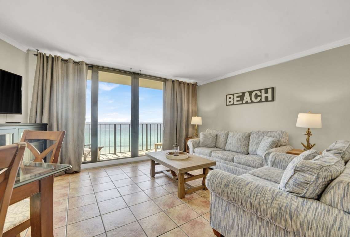 Escape to paradise in this spacious, Gulf-front 2-bedroom, 2-bath condo located in one of PCB’s most decorated resorts just steps from the crystal-clear waters of the Gulf of America. With a large kitchen and open dining area, this condo is perfect for families or small groups seeking both comfort and convenience. The living room features a sleeper sofa for extra guests, ensuring everyone has a place to unwind after a day of sun and sand.