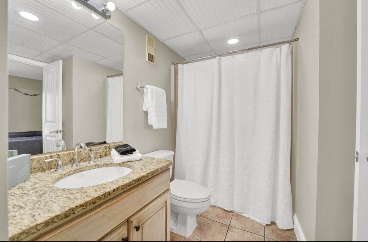 En Suite Primary Bathroom #2: Shower/Tub combo, Toilet, Vanity, Hair Dryer