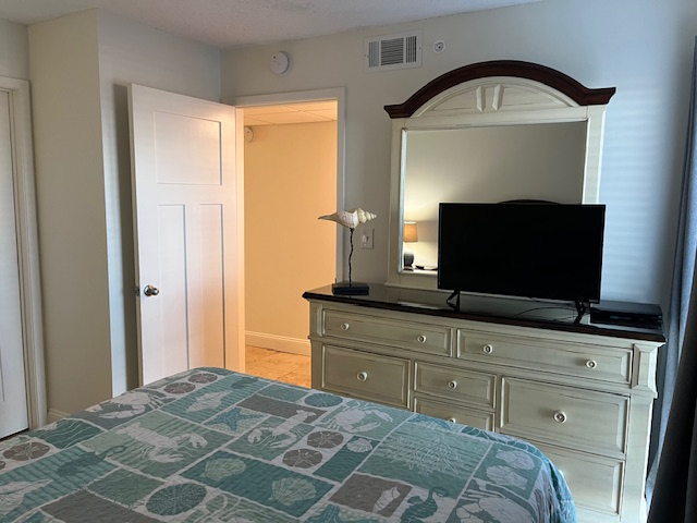 The primary bedroom in Edgewater Tower 3 406 features a Queen bed and flat screen TV with private access to the full bath. The full bath is also accessed from the hall and houses a combination tub/shower. You will feel right at home as you unpack into your own space however coastal décor ensures you stay in vacation mode throughout your stay.
