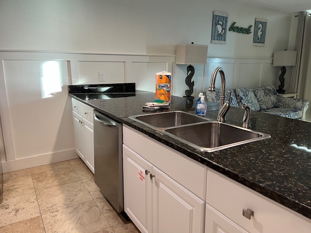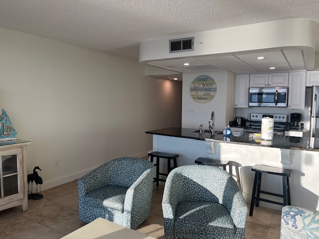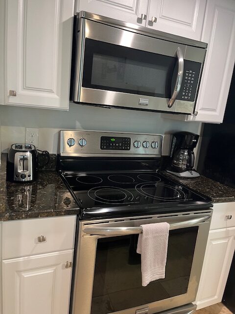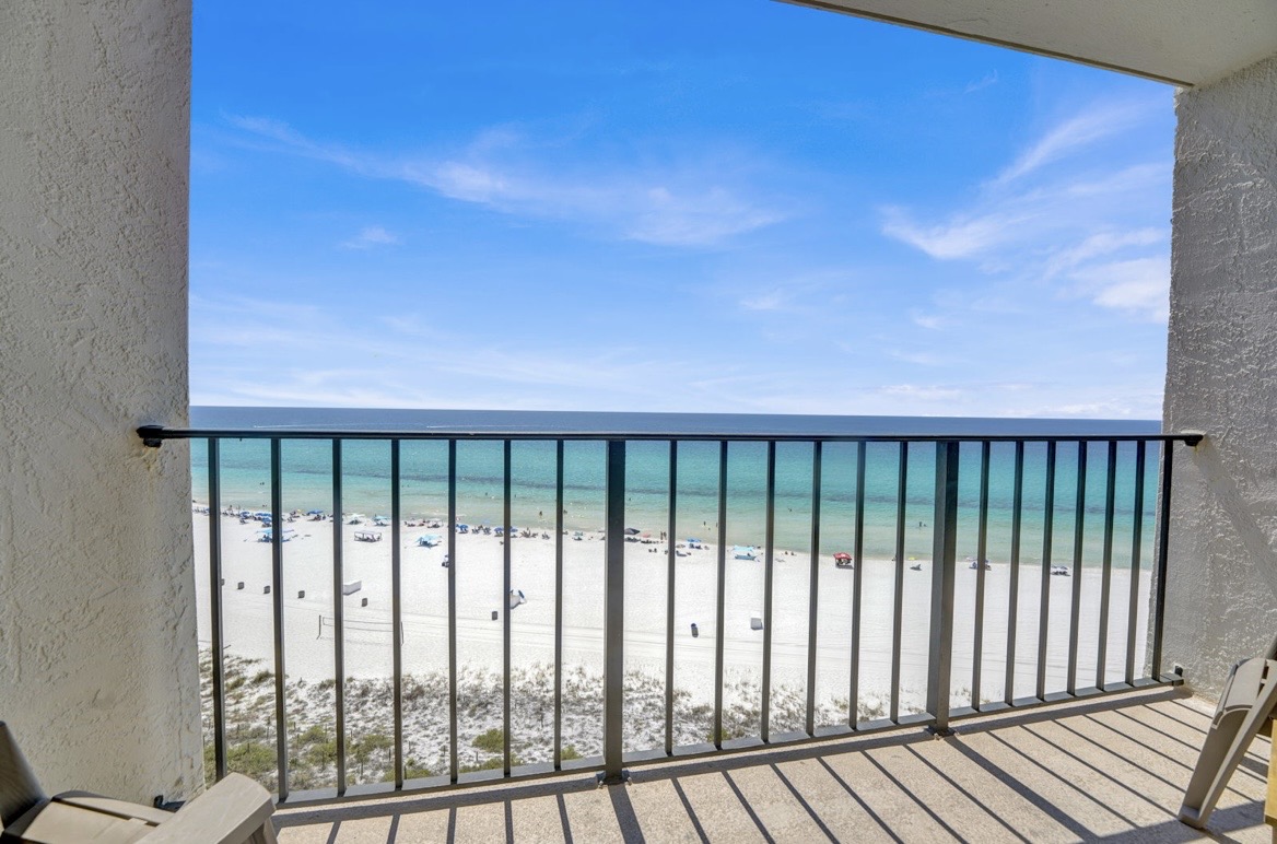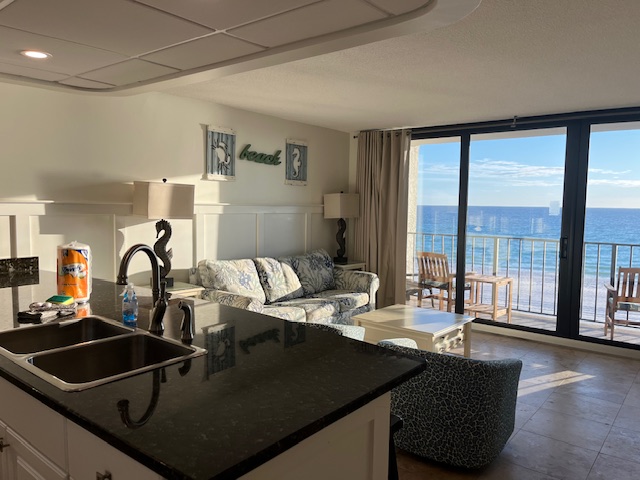 Dine in – you’ll find seating at both the table and bar counter. The kitchen has everything you may need to prepare snacks for the beach or maybe even warm up leftovers from a night out. The luxurious finishes make this space one of your favorites throughout your new home away from home. Relax in the living room and enjoy your favorite show on the large flat screen TV. Pull out the sofa for extra sleeping space. Picture-perfect views of Panama City Beach’s famous sunsets await you on the balcony.